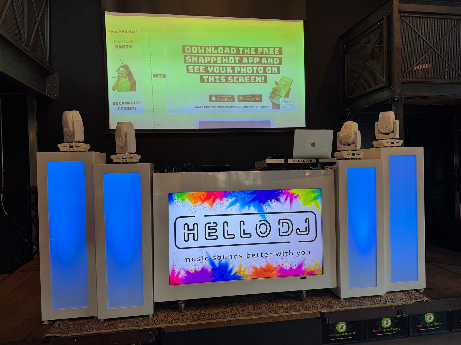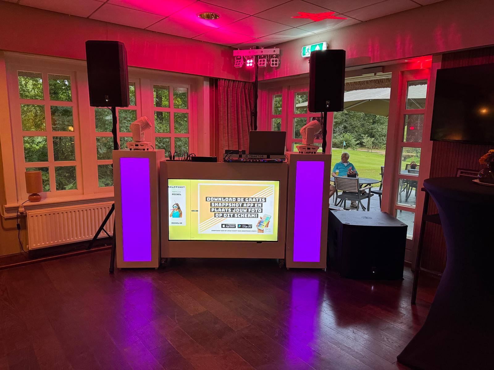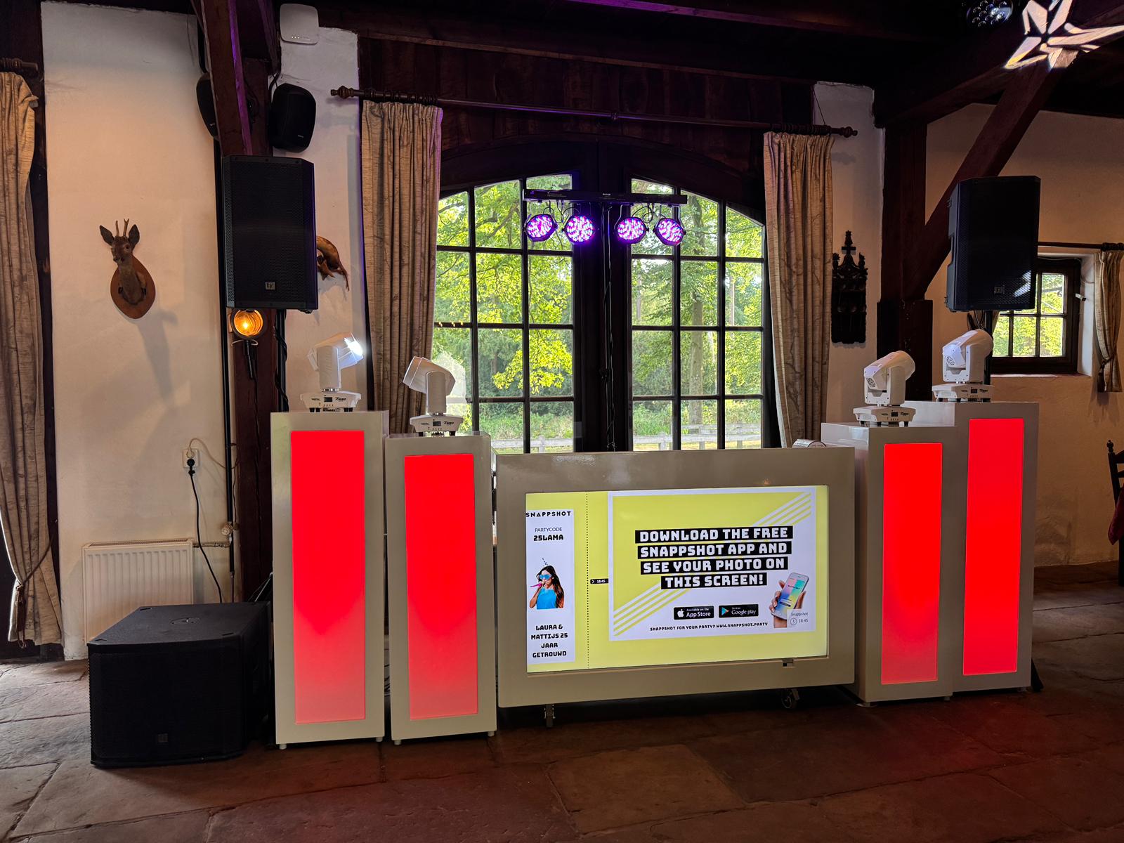 - Het enige wat nodig is – onze DJ Booth (met scherm en laptop), een smartphone en creativiteit.