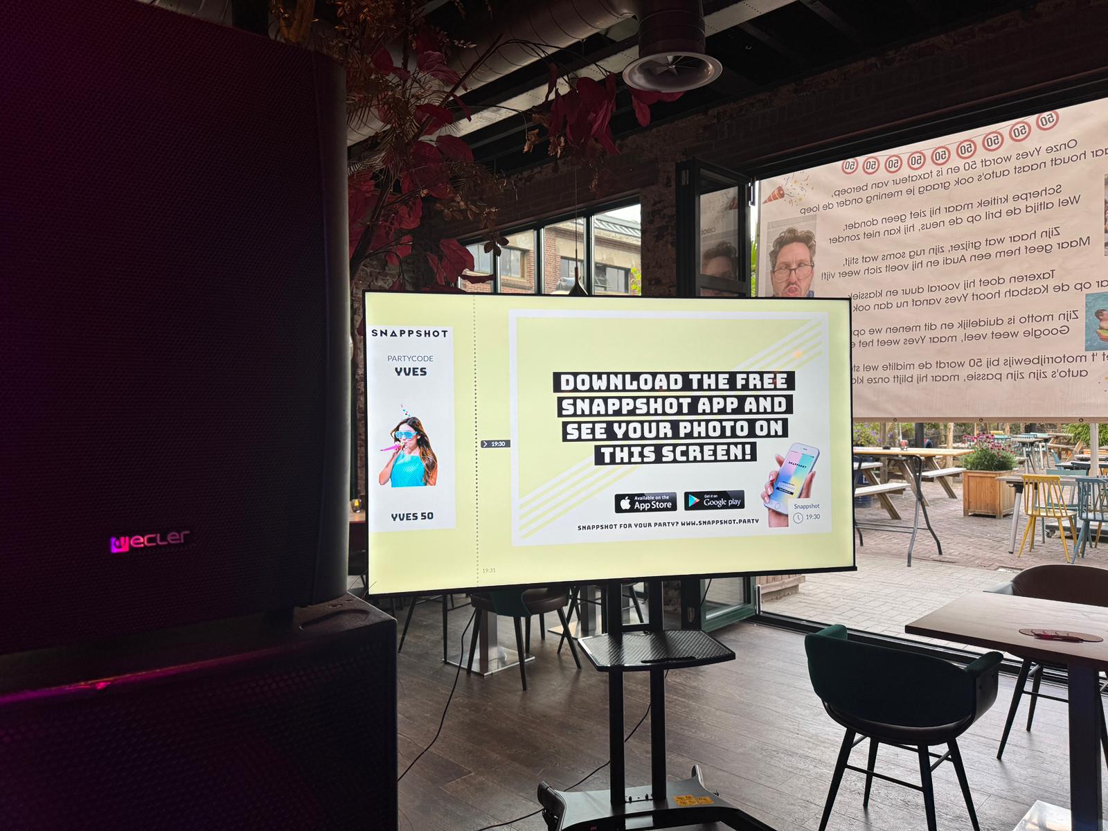 - Foto’s live op groot scherm – direct sfeer, interactie en entertainment.